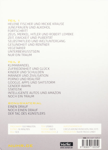 Wer kann heute noch unterscheiden zwischen Wahn und Wirklichkeit? Der Mensch ist ein Selbstbetrüger und der Computer in der eigenen Birne ziemlich schlecht programmiert. Dieter Nuhr räumt auf im vollgemüllten Hirnkasten und stellt fest: Fakten waren gestern, heute gilt als Wahrheit, was im Internet verlinkt wird. Wenn sich Dieter Nuhr in die Abgründe der menschlichen Traumwelt begibt, deckt er auf, dass der Abgrund zwischen Ist- und Sollzustand des Menschen selbst in Lichtgeschwindigkeit kaum zu überwinden ist. Trotzdem ist der Mensch fähig, glücklich zu sein. Bloß wie? Nuhr sagt es Ihnen und gibt den Menschen die Medizin, die sie so dringend brauchen: Lachen – hochdosiert.