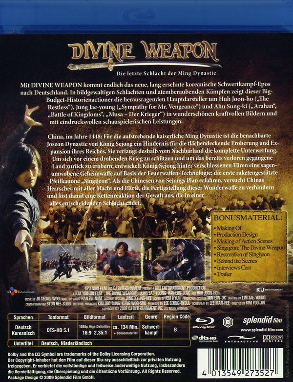 Enthält: Making of; Production Design; Making of Action Scenes; Singijeon: The Divine Weapon; Restoration of Singijeon; Behind the Scenes; Interviews Cast; Trailer; Singijeon: The Divine Weapon; Restoration of Singijeon; Behind the Scenes; Interviews Cast; Trailer;