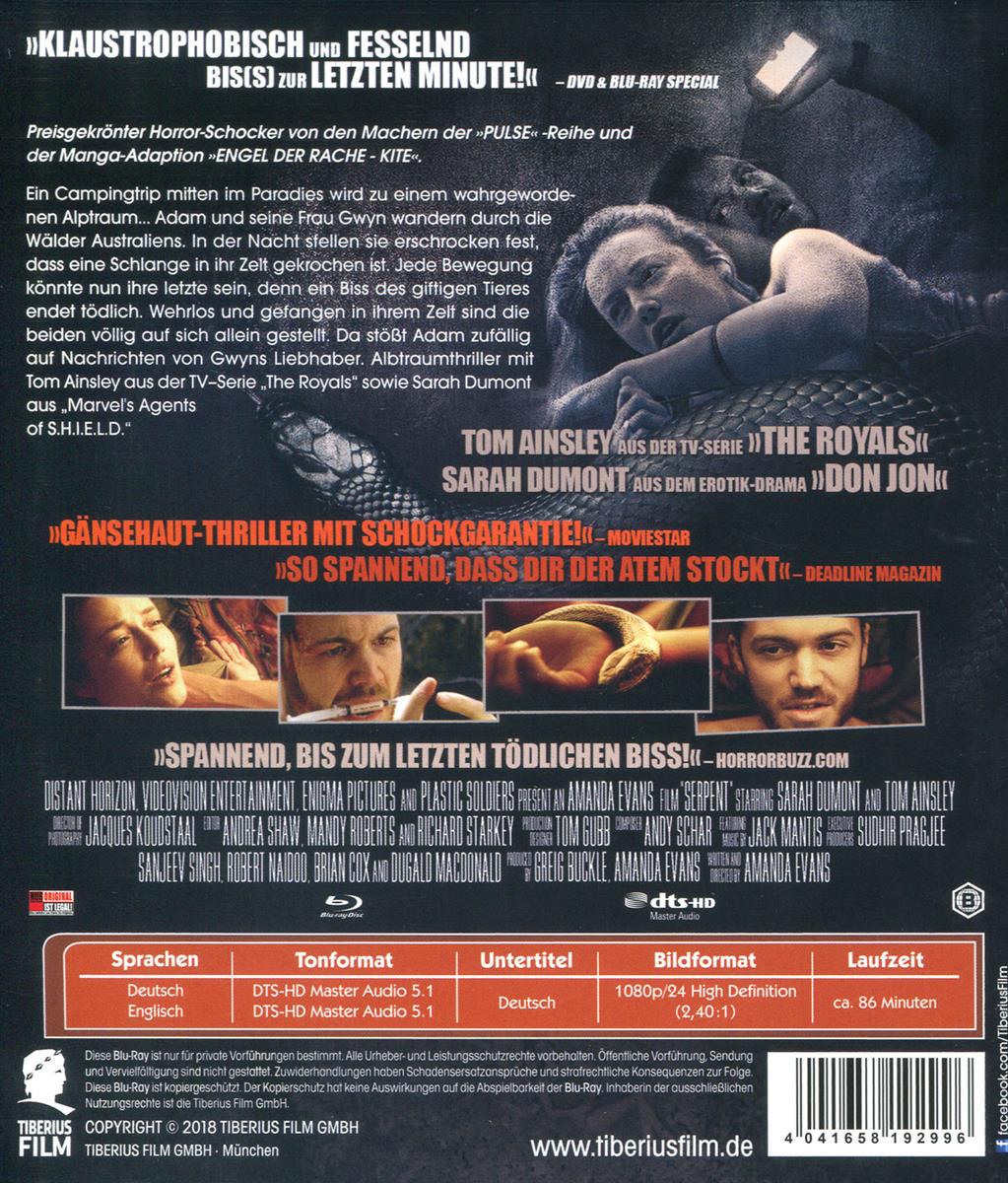 Der preisgekrönte Horror-Schocker von den Machern der »PULSE«-Reihe und der Manga-Adaption »ENGEL DER RACHE - KITE« ist nichts für Klaustrophobiker und wer Angst vor Schlangen hat, der lässt es lieber gleich bleiben. Hier braucht man Nerven wie Drahtseile und Gänsehaut ist garantiert. Großartig besetzt mit Tom Ainsley aus der TV–Serie „The Royals“, sowie Sarah Dumont aus „Marvels Agents of S.H.I.E.L.D.“.