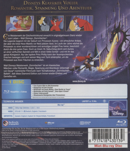 Walt Disneys Meisterwerk "Dornröschen" enthält alles, was zu einem klassischen Märchen gehört: Romantik, Magie, Spannung, Abenteuer, das Gute und das Böse und natürlich ein Happy-End. Untermalt von der Oscar-nominierten Filmmusik nach Tschaikowskys "Dornröschen-Ballett" haben Disneys Zeichentrickkünstler dieses berühmte Märchen perfekt in Szene gesetzt. Erleben und genießen Sie dieses klassische Disney Meisterwerk jetzt auf Video - in neuem Glanz und Klang!