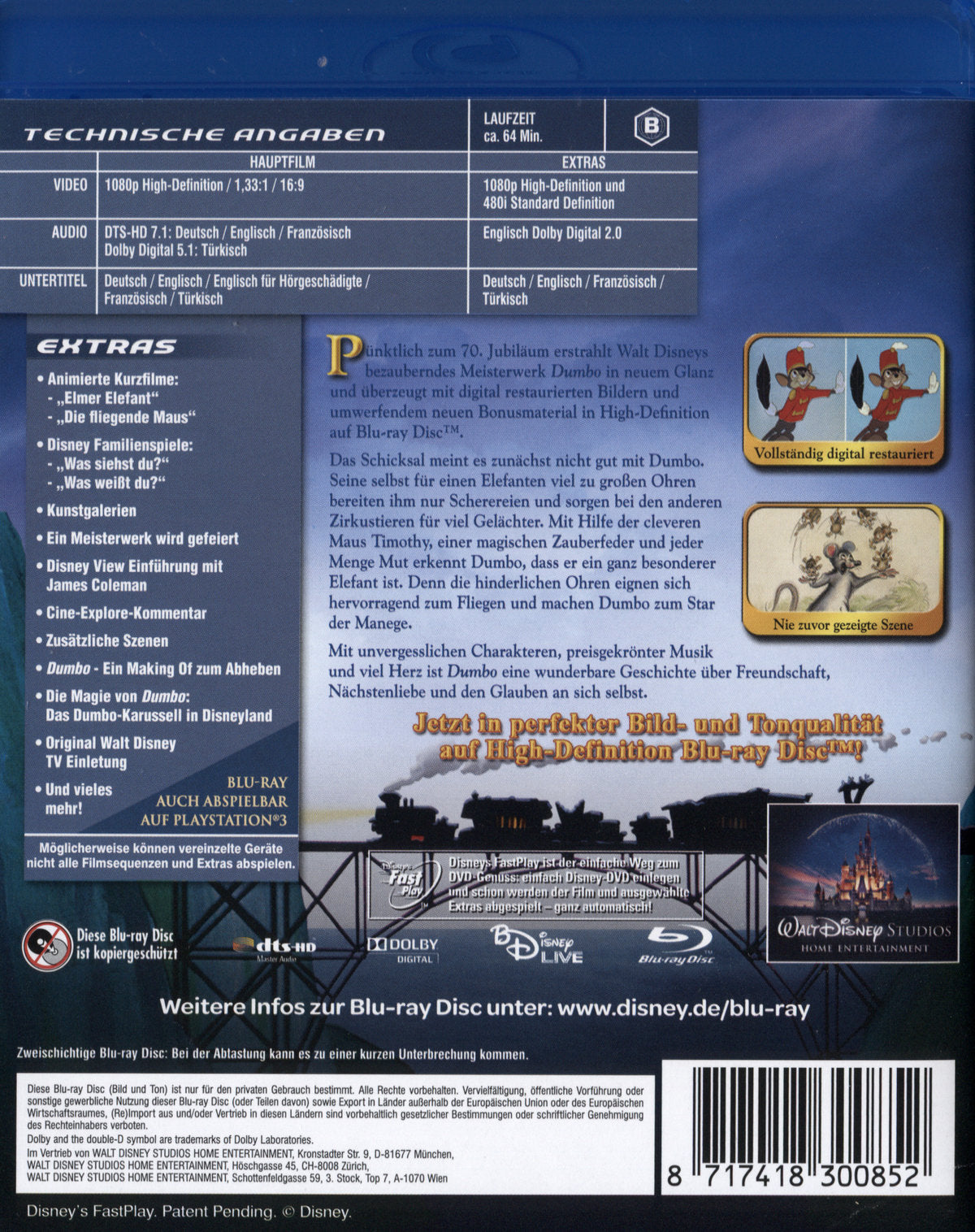 Dumbo - eines der zauberhaftesten Disney-Meisterwerke: Brilliant gezeichnet, begeistert dieser wundervolle Film mit seinen Oscar-preisgekrönten Melodien, von denen fast jede zum Evergreen geworden ist.