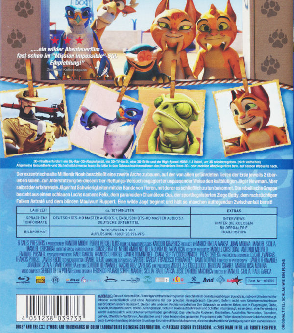 Der exzentrische alte Millionär Noah beschließt eine zweite Arche zu bauen, auf der von allen gefährdeten Tieren der Erde jeweils 2 überleben sollen. Zur Unterstützung bei diesem Tier-Rettungs-Versuch engagiert er unpassender Weise den kaltblütigen Jäger Newman. Aber selbst der erfahrenste Jäger hat Schwierigkeiten mit der Bande von Tieren, mit der er es schließlich zu tun bekommt. Die rebellische Gruppe besteht aus einem schlauen Luchs namens Felix, dem paranoiden Chamäleon Gus, der sportbegeisterten Ziege Betty, dem rachsüchtigen Falken Astraté und dem blinden Maulwurf Ruppert. Eine wilde Jagd beginnt und hält so manchen aufregenden Zwischenfall bereit!
