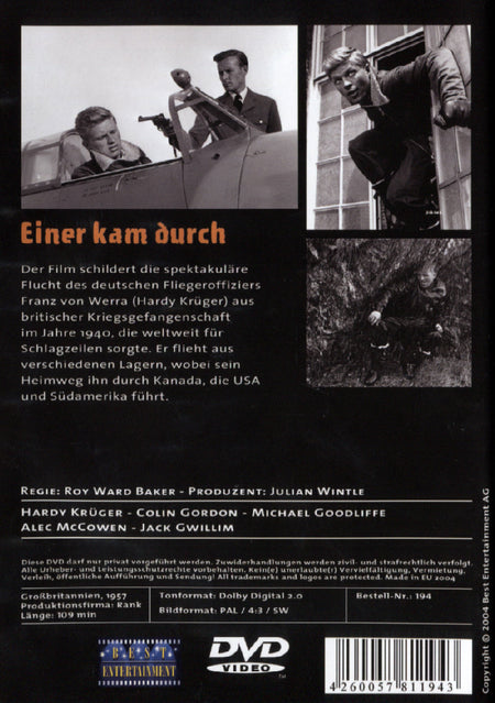 1940: Die Schlacht um England ist auf ihrem Höhepunkt. Aus dem dunstigen Himmel trudelt eine beschädigte Messerschmitt auf den Boden. Der Pilot Franz von Werra wird gefangengenommen. Das anschließende Verhör kann ihn zwar einschüchtern, hindert ihn aber nicht an seinem einzigen Ziel: Flucht. So beginnt die wahre und überaus dramatische Geschichte des Franz von Werra. Immer wieder gelingt die Flucht. Immer wieder gerät er in Gefangenschaft. Bis er bei seiner letzten spektakulärsten Flucht seine Verfolger endgültig abschüttelt ...