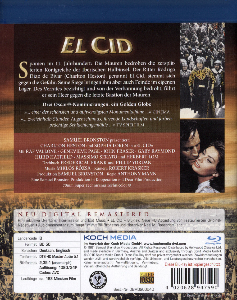 Enthält: Digital Remastered; Film inkl. Overtüre, Intermission und Exit Music; Audiokommentar zum Hauptfilm mit Bill Bronston und Historiker Neal M. Rosendorf (in engl. Sprache);