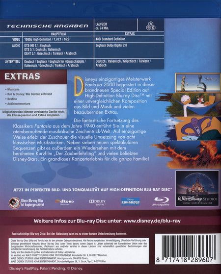 Die fantastische Fortsetzung des Klassikers Fantasia aus dem Jahre 1940 entführt Sie in eine atemberaubende musikalische Zeichentrick-Welt. Auf einzigartige Weise erlebt der Zuschauer die visuelle Umsetzung von acht klassischen Musikstücken. Neben sieben neuen spektakulären Sequenzen gibt es außerdem ein Wiedersehen mit dem berühmten Kurzfilm "Der Zauberlehrling" und vielen beliebten Disney-Stars. Ein grandioses Konzerterlebnis für die ganze Familie!