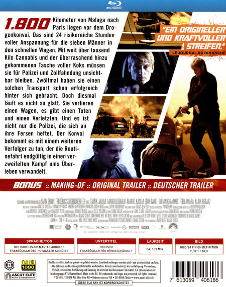1.800 Kilometer von Malaga nach Paris liegen vor dem Drogenkonvoi. Das sind 24 risikoreiche Stunden voller Anspannung für die sieben Männer in den schnellen Wagen. Mit weit über tausend Kilo Cannabis und der überraschend hinzu gekommenen Tasche voller Koks müssen sie für Polizei und Zollfahndung unsichtbar bleiben. Zwölfmal haben sie einen solchen Transport schon erfolgreich hinter sich gebracht. Doch diesmal läuft es nicht so glatt. Sie verlieren einen Wagen, es gibt einen Toten und einen Verletzten. Und es ist nicht nur die Polizei, die sich an ihre Fersen heftet. Der Konvoi bekommt es mit einem weiteren Verfolger zu tun, der die Routinefahrt endgültig in einen verzweifelten Kampf ums Überleben verwandelt.