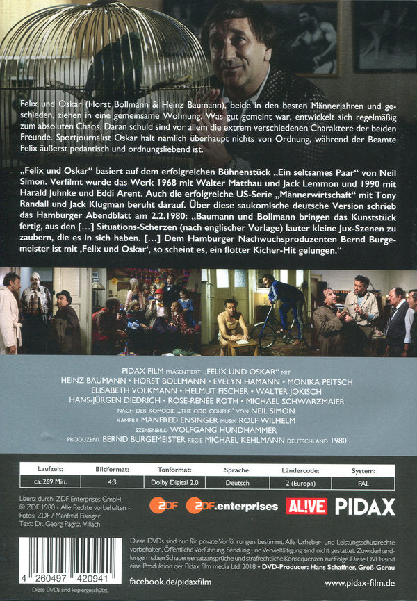 Felix und Oskar (Horst Bollmann & Heinz Baumann), beide in den besten Männerjahren und geschieden, ziehen in eine gemeinsame Wohnung. Was gut gemeint war, entwickelt sich regelmäßig zum absoluten Chaos. Daran schuld sind vor allem die extrem verschiedenen Charaktere der beiden Freunde.