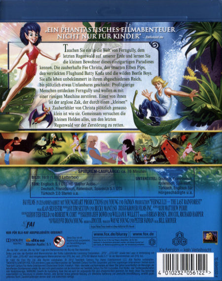 Tauchen Sie ein in die zauberhaft, magische Welt von Ferngully, dem letzten Regenwald auf unserem blauen Planeten. Es ist eine geheimnisvolle Welt voller Wunder und Abenteuer, in der menschliche Wesen nur im Märchen existieren. Lernen Sie die kleinen Bewohner dieses einzigartigen Paradieses kennen: Die zauberhafte Fee Christa, den smarten Elberich Pips, den verrückten Flughund Batty Koda und die wilden Beetle Boys. Sie alle lieben ihre abgeschiedene Welt und leben einfach munter in den Tag hinein. Eines Tages geschieht das Unfassbare: Profitgierige Menschen entdecken das idylische Paradies! Sie kommen mit einem stählernen Ungetüm und wollen alles zerstören. Einer von ihnen ist der arglose Zak, der durch einen "kleinen" Zauberfehler von Christa plötzlich genauso klein ist wie sie. Gemeinsam versuchen die kleinen Helden alles, um den letzten Regenwald vor der Zerstörung zu retten.