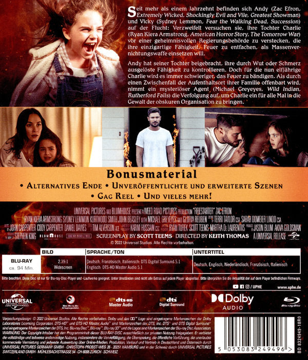 Seit mehr als einem Jahrzehnt befinden sich Andy (Zac Efron, "Extremely Wicked", "Shockingly Evil and Vile", "Greatest Showman") und Vicky (Sydney Lemmon, "Fear the Walking Dead", "Succession") auf der Flucht: Verzweifelt versuchen sie, ihre Tochter Charlie (Ryan Kiera Armstrong, "American Horror Story", "The Tomorrow War") vor einer geheimnisvollen Regierungsbehörde zu verstecken, die ihre einzigartige Fähigkeit, Feuer zu entfachen, als Massenvernichtungswaffe einsetzen will.