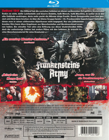 Ostfront 1944: Ein Hilferuf hat die russischen Soldaten an diesen verdammten Ort geführt. Kameraden finden sie nicht, dafür Leichenteile und bizarre Skelette, halb Mensch, halb Maschine. Je weiter sie in das alte Gebäude vordringen, desto mehr packt die Männer eisige Furcht. Etwas Grauenvolles muss hier passiert sein. Und dann brechen sie über die kleine Gruppe herein – Dr. Frankensteins Superkrieger! Gestalten, denen man in seinen schlimmsten Alpträumen nicht begegnet. Nur ein vollkommen krankes Hirn kann diese Ungeheuer aus Menschenteilen und Mordmaschinen ersonnen haben. Ein schneller Tod wäre eine Erlösung aus dieser bluttriefenden Hölle, doch der wahnsinnige Doktor hat andere Pläne mit den Soldaten. Er braucht frisches Menschenmaterial für seine Kreaturen...