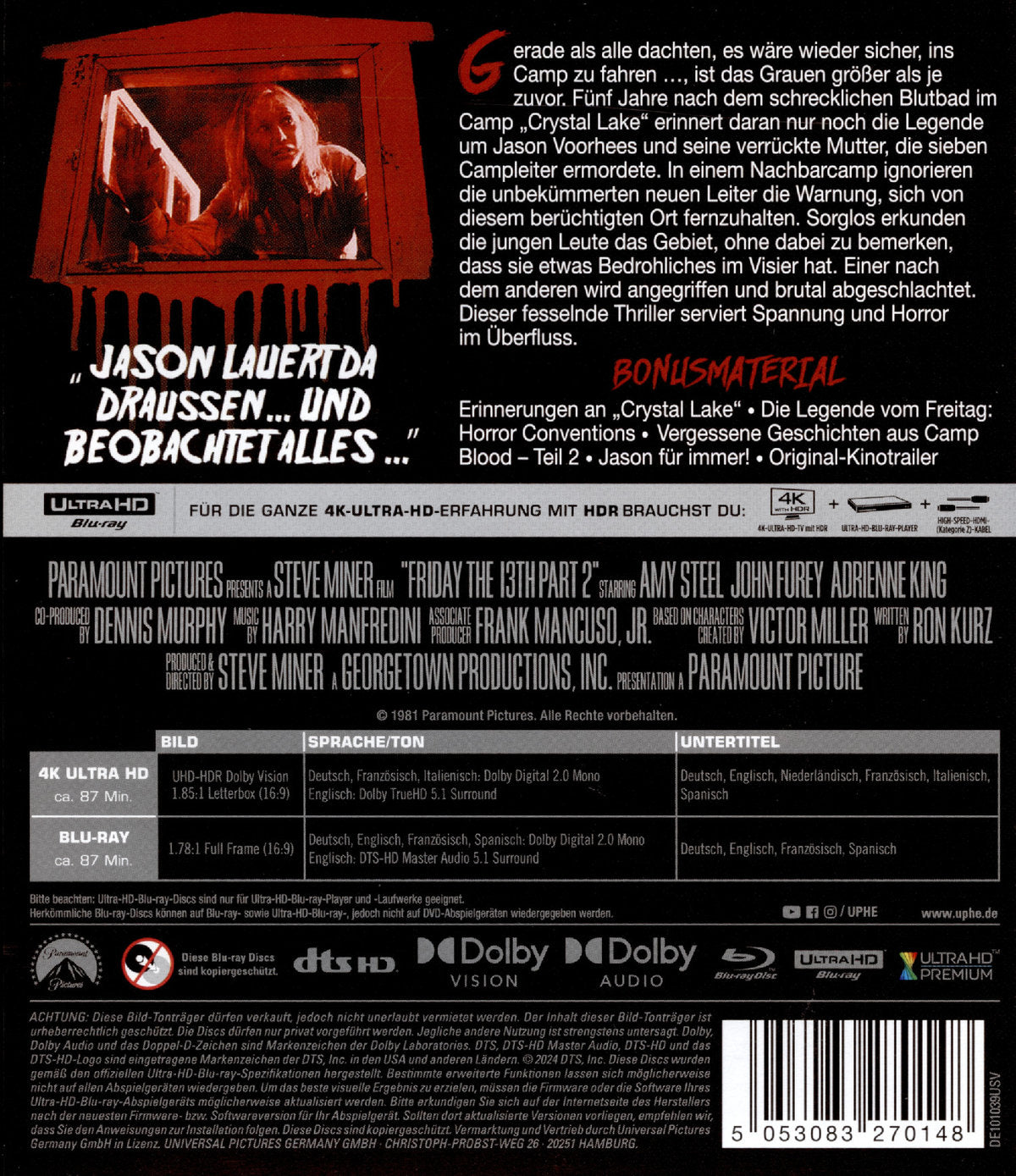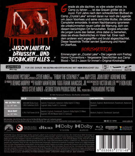 Enthält: Enthält 4K UHD & Blu-ray , Erinnerungen an "Crystal Lake",Die Legende vom Freitag: Horror-Conventions,Vergessene Geschichten aus Camp Blood - Teil 2,Jason für immer,Originalkinotrailer
