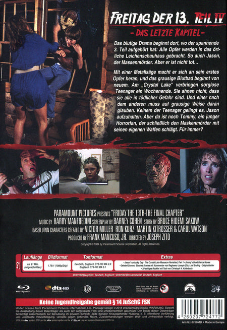 Freitag, der 13. - Teil 4: Das letzte Kapitel - Collector's Edition - limitiertes Mediabook auf 500 Stück (Cover D)