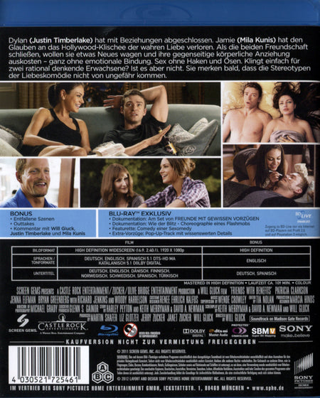 Enthält: Entfallene Szenen; Outtakes; Kommentar mit Will Gluck, Justin Timberlake und Mila Kunis; Dokumentation: Am Set von Freunde mit Gewissen vorzügen; Dokumentation: Wie der Blitz - Choreographie eines Flashmobs; Featurette: Comedy einer Sexomedy; Extra-Vorzüge: Pop-Up-Track mit wissenwerten Details; BD-Live;