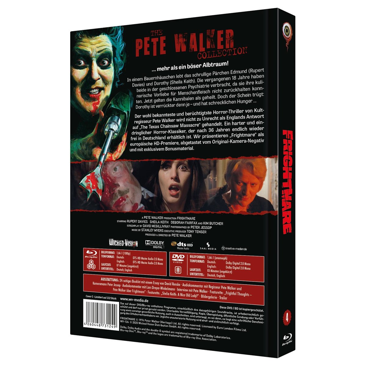 Der wohl bekannteste und berüchtigtste Horror-Thriller von Kultregisseur Pete Walker wird nicht zu Unrecht als Englands Antwort auf „The Texas Chainsaw Massacre“ gehandelt. Ein harter und eindringlicher Horror-Klassiker, der nach 36 Jahren endlich wieder frei in Deutschland erhältlich ist. Wir präsentieren „Frightmare“ als europäische HD-Premiere, abgetastet vom Original-Kamera-Negativ und mit exklusivem Bonusmaterial.