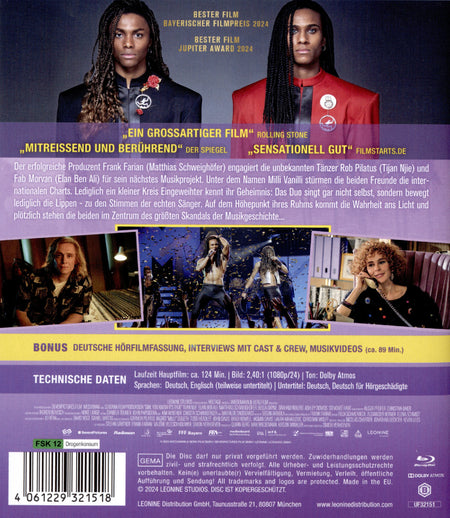Der erfolgreiche Produzent Frank Farian (Matthias Schweighöfer) engagiert die unbekannten Tänzer Rob Pilatus (Tijan Njie) und Fab Morvan (Elan Ben Ali) für sein nächstes Musikprojekt. Es folgt ein kometenhafter Aufstieg, der alle Dimensionen sprengt. Unter dem Namen Milli Vanilli stürmen die beiden Freunde Rob und Fab die internationalen Charts, landen drei Nummer-1-Hits in den USA und genießen das exzessive Leben in Hollywood. Lediglich ein kleiner Kreis Eingeweihter kennt ihr Geheimnis: Das Duo singt gar nicht selbst, sondern bewegt lediglich die Lippen - zu den Stimmen der echten Sänger. Auf dem Höhepunkt ihres Ruhms, als Milli Vanilli den Grammy gewinnen und durch Amerika touren, kommt die Wahrheit schließlich ans Licht. Während die mächtige Maschinerie, die hinter dem Duo die Fäden gezogen hat, sich rasch aus der Affäre zieht, stehen Rob und Fab mitten im größten Skandal der Musikgeschichte…