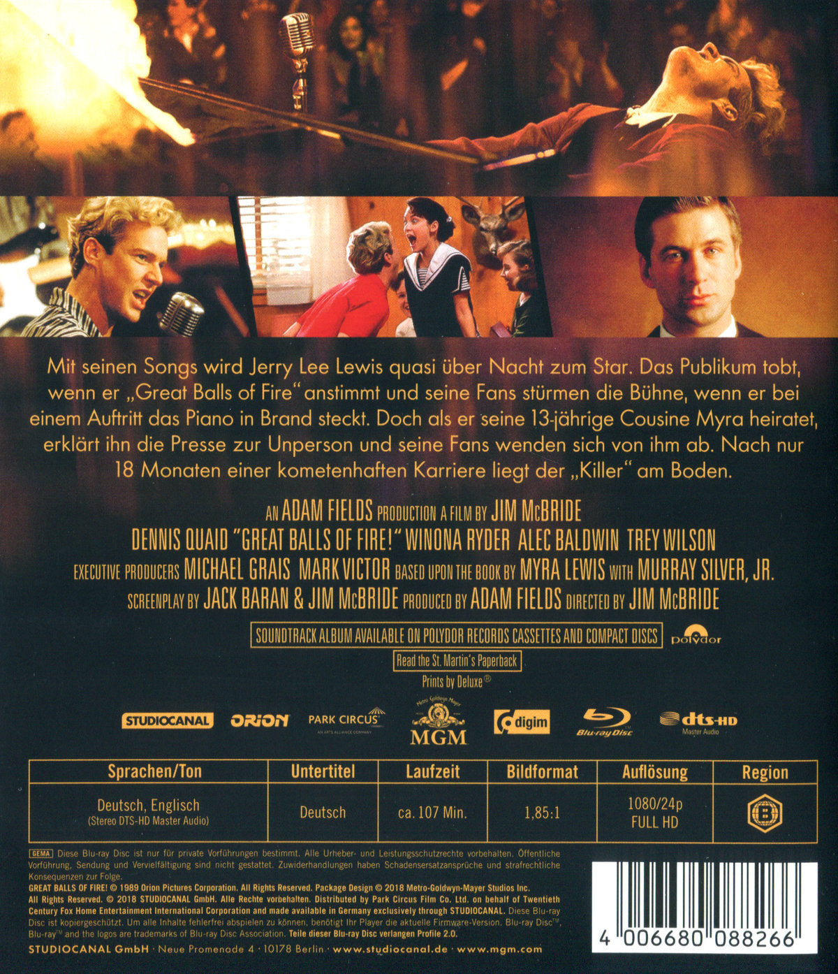 Was solls? Wenn ich zur Hölle fahre, spiele ich eben dort Klavier! In den braven 50er Jahren galt Rock n Roll als Teufelswerk - und Jerry Lee Lewis als des Teufels dämonischster Advokat. Dennis Quaid gibt eine beeindruckende Vorstellung in der Rolle des legendären Rock n Roll-Rebellen, der alle Regeln brach - und beinahe selbst daran zerbrochen wäre. Neben ihm billieren Alec Baldwin und Winona Ryder in dieser grellen Filographie, zu der Jerry Lee Lewis höchstpersönlich alle Tracks neu einspielte - ein wilder Ritt durch die 50er Jahre, der in die Beine geht!