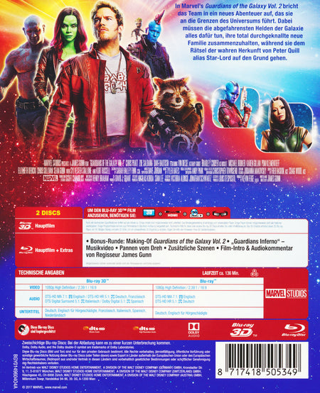.. die Rockstars des Weltalls feiern ihre galaktische Comeback-Tour - die GUARDIANS OF THE GALAXY! Vor dem akustischen Hintergrund eines brandneuen "Awesome Mix Vol. 2" brechen sie in ein neues Abenteuer auf, das sie an die Grenzen des Universums führt. Dabei müssen die abgefahrensten Helden der Galaxie alles dafür tun, ihre total durchgeknallte neue Familie zusammenzuhalten, während sie dem Rätsel der wahren Herkunft von Peter Quill alias Star-Lord auf den Grund gehen. Auf ihrem schrägen Trip treffen sie auf alte Feinde, die zu neuen Verbündeten werden - und die sind auch dringend nötig im Kampf gegen die wirklich Bösen. Die Chance, die Galaxie zu retten, bekommt man schließlich nur zweimal!