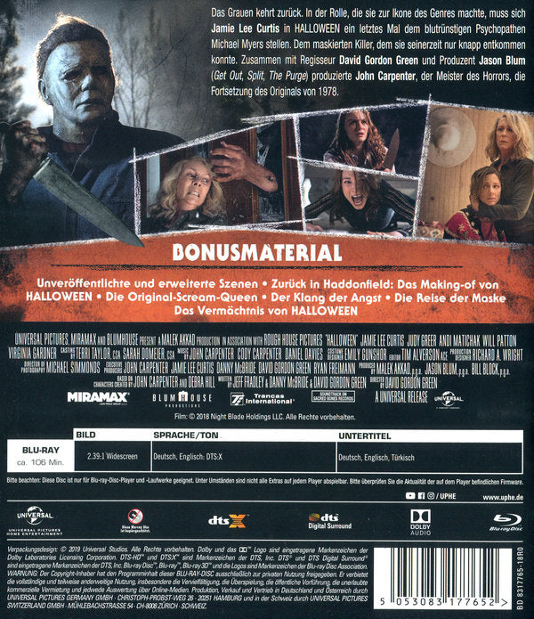 Enthält: Unveröffentlichte und erweiterte Szenen; Zurück in Haddonfield: Das Making of von Halloween; Die Original-Scream-Queen; Der Klang der Angst; Die Reise der Maske; Das Vermächtnis von Halloween;