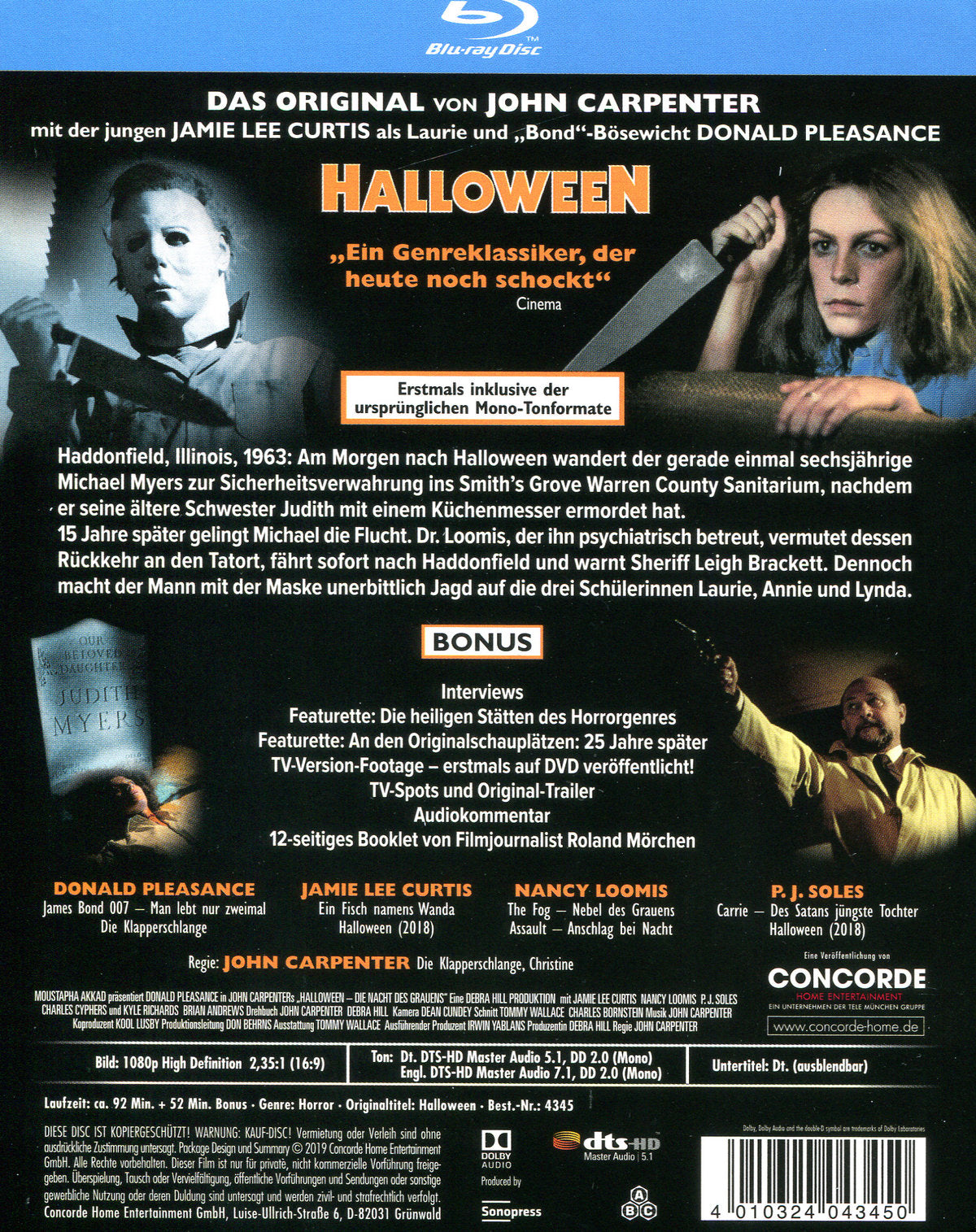 Schauspieler: Charles Cyphers, Donald Pleasence, Jamie Lee Curtis, Kyle Richards, Nancy Loomis und P.J. Soles