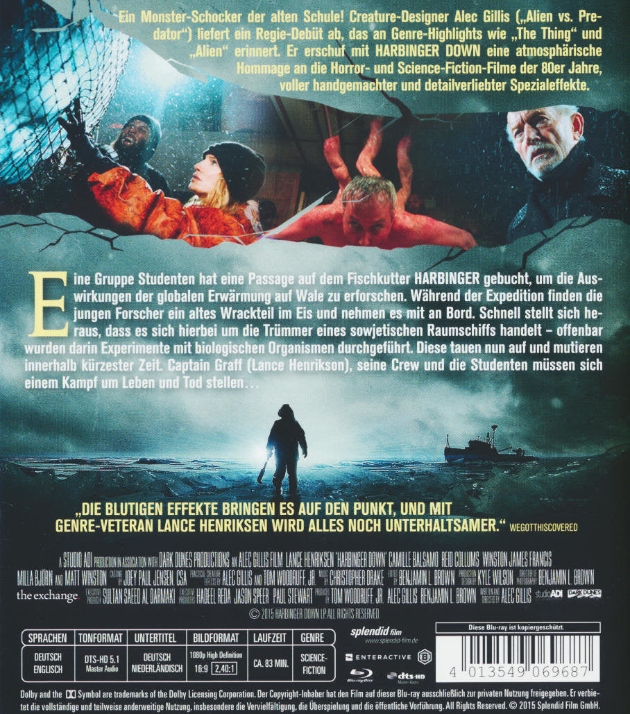 Eine Gruppe Studenten hat eine Passage auf dem Fischkutter HARBINGER gebucht, um die Auswirkungen der globalen Erwärmung auf Wale zu erforschen. Während der Expedition finden die jungen Forscher ein altes Wrackteil im Eis und nehmen es mit an Bord. Schnell stellt sich heraus, dass es sich hierbei um die Trümmer eines sowjetischen Raumschiffs handelt - offenbar wurden darin Experimente mit biologischen Organismen durchgeführt. Diese tauen nun auf und mutieren innerhalb kürzester Zeit. Captain Graff (Lance Henriksen), seine Crew und die Studenten müssen sich einem Kampf um Leben und Tod stellen ...