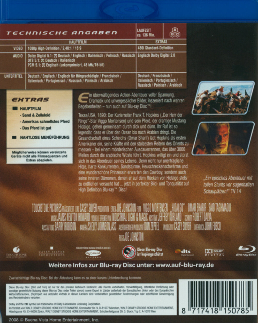 Texas, USA 1890: Der Kurierreiter Frank T. Hopkins und sein Pferd, der drahtige Mustang Hidalgo, gehen gemeinsam durch dick und dünn. Ihr Ruf ist so legendär, dass er über den Ozean bis nach Arabien dringt. Die Gesandtschaft eines Scheichs lädt Hopkins als ersten Amerikaner ein, seine Kräfte mit den stolzesten Reitern des Orients zu messen - bei einem mörderischen Ausdauerrennen, das über 3000 Meilen durch die arabische Wüste führt. Hopkins willigt ein und stürzt sich in das Abenteuer seines Lebens. Denn nicht nur unerträgliche Hitze, harte Konkurrenten, Sandstürme, Heuschreckenschwärme und eine wunderschöne Prinzessin erwarten den Cowboy, sondern auch seine inneren Dämonen, denen er auf dem Rücken von Hidalgo stets zu entfliehen versucht hat...