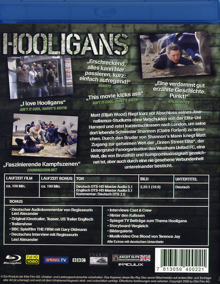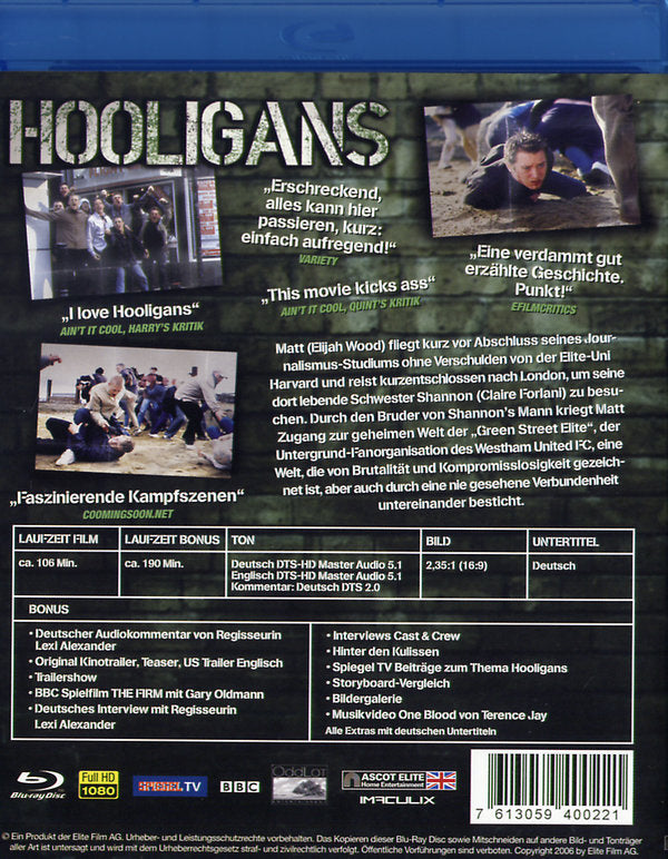 Enthält: Alle Extras mit deutschen Untertiteln; Deutscher Audiokommentar von Regisseurin Lexi Alexander; Original Kinotrailer; Teaser; US Trailer Englisch; Trailershow; BBC Spielfilm 'The Firm' mit Gary Oldmann; Deutsches Interview mit Regisseurin Lexi Alexander; Interviews Cast & Crew; Hinter den Kulissen; Spiegel TV Beiträgen zum Thema Hooligans; Storyboard-Vergleich; Bildergalerie; Musikvideo;