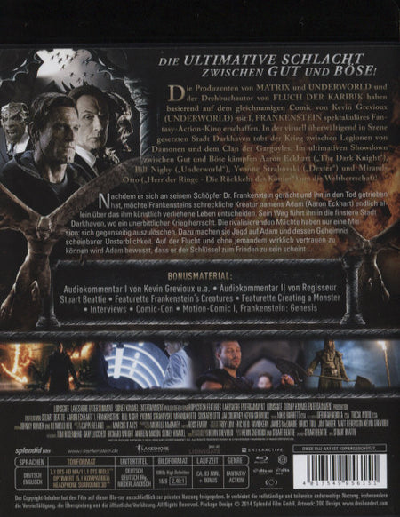 Enthält: Audiokommentare; Featurette Frankenstein's Creatures; Featurette Creating a Monster; Interviews; Comic-Con; Motion-Comic I, Frankenstein: Genesis;