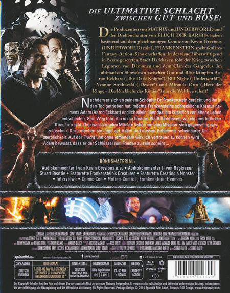 Enthält: Audiokommentare; Featurette Frankenstein's Creatures; Featurette Creating a Monster; Interviews; Comic-Con; Motion-Comic I, Frankenstein: Genesis;
