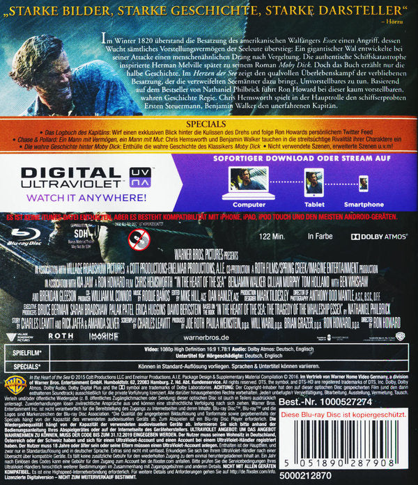 Enthält: Das Logbuch des Kapitäns; Blick hinter die Kulissen; Chase & Pollard; Die wahre Geschichte hinter Moby Dick; Nicht verwendete Szenen; Erweiterte Szenen;