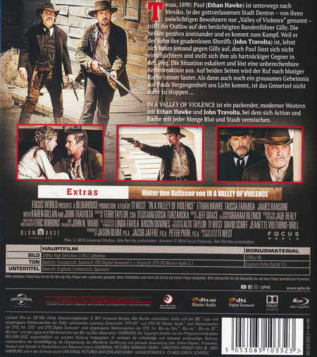Texas, 1890: Paul (Ethan Hawke) ist unterwegs nach Mexiko. In der gottverlassenen Stadt Denton - von ihren zwielichtigen Bewohnern nur "Valley of Violence" genannt - trifft der Outlaw auf den berüchtigten Bandenführer Gilly. Die beiden geraten aneinander und es kommt zum Kampf. Weil er der Sohn des gnadenlosen Sheriffs (John Travolta) ist, lehnt sich kaum jemand gegen Gilly auf, doch Paul lässt sich nicht einschüchtern und stellt sich ihm als hartnäckiger Gegner in den Weg. Die Situation eskaliert und löst eine unberechenbare Kettenreaktion aus. Auf beiden Seiten wird der Ruf nach blutiger Rache immer lauter. Als dann auch noch ein grausames Geheimnis aus Pauls Vergangenheit ans Licht kommt, ist das Gemetzel nicht mehr zu stoppen ...
