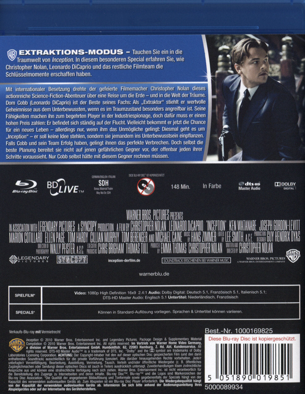 Schauspieler: Cillian Murphy, Ellen Page, Joseph Gordon-Levitt, Ken Watanabe, Leonardo DiCaprio, Marion Cotillard, Michael Caine, Tom Berenger und Tom Hardy