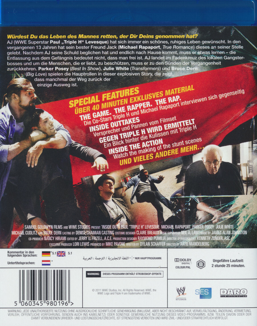 Enthält: Laufzeit Bonusmaterial ca. 40 Min.; The Game, The Rapper, The Rap: Di Co-Stars Triple H und MichaelRapaport interviewen sich gegenseitig; Inside Outtakes: Versprecher und Pannen vom Filmset; Gegen Triple H wird ermittelt: ein Blick hinter die Kulissen mit Triple H; Inside the Action: Watch the making of the stunt scenes;