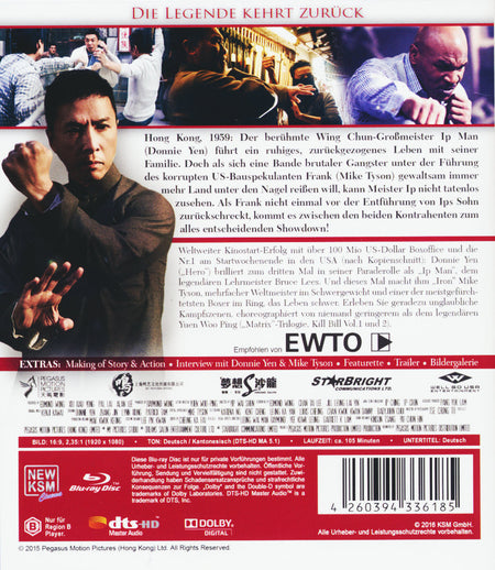 Hong Kong, 1959: Der ber�hmte Wing Chun-Gro�meister Ip Man (Donnie Yen) f�hrt ein ruhiges, zur�ckgezogenes Leben mit seiner Familie. Doch als sich eine Bande brutaler Gangster unter der F�hrung des korrupten US-Bauspekulanten Frank (Mike Tyson) gewaltsam immer mehr Land unter den Nagel rei�en will, kann Meister Ip nicht tatenlos zusehen. Als Frank nicht einmal vor der Entf�hrung von Ips Sohn zur�ckschreckt, kommt es zwischen den beiden Kontrahenten zum alles entscheidenden Showdown!