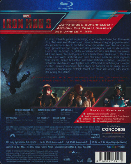 Enthält: Entfallene und erweiterte Szenen; Audiokommentarvon Shane Black & Drew Pearce; Featurettes; Marvel One-Shot: Agent Carter; Outtakes; Dt. und Original-Kinotrailer; Laufzeit Bonusmaterial ca. 55 Min.;