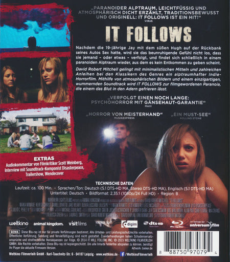 Nachdem die 19-j�hrige Jay mit dem s��en Hugh auf der R�ckbank seines Autos Sex hatte, wird sie das beunruhigende Gef�hl nicht los, dass sie jemand - oder etwas - verfolgt und findet sich schlie�lich in einem paranoiden Alptraum wieder, aus dem es kein Entkommen zu geben scheint.