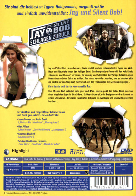 Eigentlich sind Jay und Silent Bob die entspanntesten Typen der Welt. Die Nachricht, die ihnen ihre alter Kumpel Holden überbringt, erregt jedoch den heiligen Zorn der beiden Buddies: Eine amerikanische Independent-Firma will den Kult-Comic "Bluntman and Chronic" verfilmen, für den Jay und Silent Bob die Vorlage lieferten. Mit hippen, geleckten Jungstars in den Hauptrollen. Und ohne Jay und Silent Bob einen müden Dollar zu zahlen. Das muss verhindert werden! Also machen sich die beiden chaotischen Slacker auf den Weg nach Hollywood, um den Produzenten des Machwerks ein wenig das Zelluloid zu zerschnippeln...Ihre Mission läuft natürlich nicht ganz nach Plan. Und so gerät das debile Dope-Duo von einer misslichen Lage in die nächste. Jay verliebt sich in die schöne Justice - eine Bekanntschaft, die er bald mit einem landesweiten Haftbefehl bezahlen muss. Die atemberaubende Jagd auf die Jungs ist eröffnet. Zu allem Überfluss müssen sich die beiden auch noch mit einem Orang-Utan herumärgern. Doch zu dritt und mit einem - zusammengenommen - überdurchschnittlichen IQ gelingt ihnen die Flucht. Aber wieder überstürzen sich die Ereignisse und es kommt zu einem Showdown, der dieser chaotischen Odyssee ein würdiges und wahnwitziges Finale beschert...