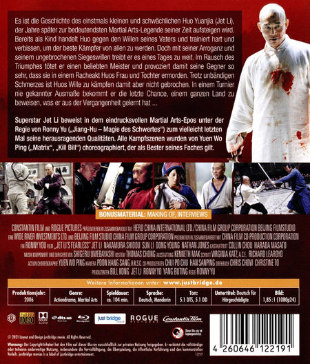 Es ist die Geschichte des einstmals kleinen und schw�chlichen Huo Yuanjia (Jet Li), der Jahre sp�ter zur bedeutendsten Martial Arts-Legende seiner Zeit aufsteigen wird. Bereits als Kind handelt Huo gegen den Willen seines Vaters und trainiert hart und verbissen, um der beste K�mpfer von allen zu werden. Doch mit seiner Arroganz und seinem ungebrochenen Siegeswillen treibt er es eines Tages zu weit. Im Rausch des Triumphes t�tet er einen beliebten Meister und provoziert damit seine Gegner so sehr, dass sie in einem Racheakt Huos Frau und Tochter ermorden.