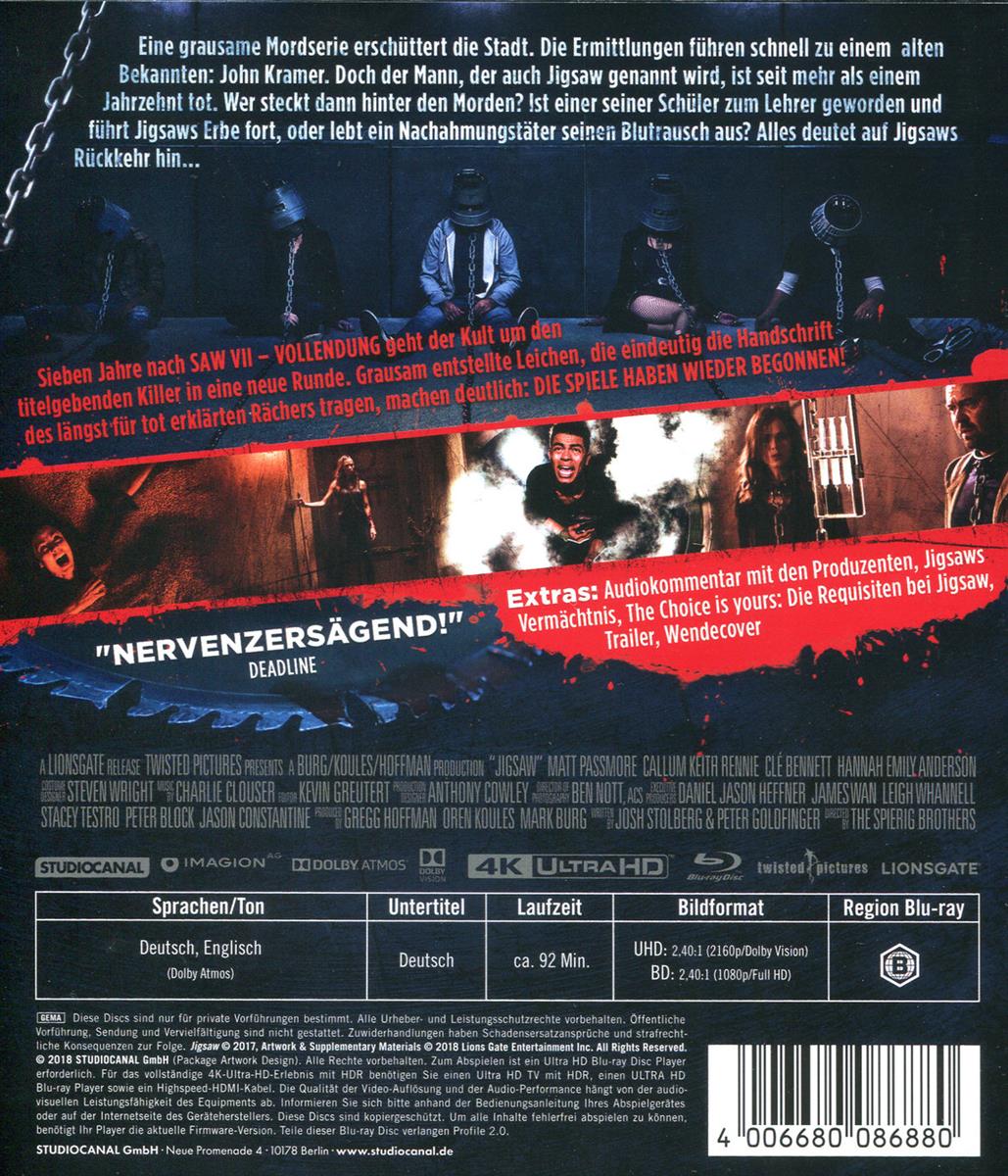 Enthält: Audiokommentar mit den Produzenten; "Jigsaws Vermächtnis"; "The Choice is yours: Die Requisiten bei Jigsaw"; Trailer;