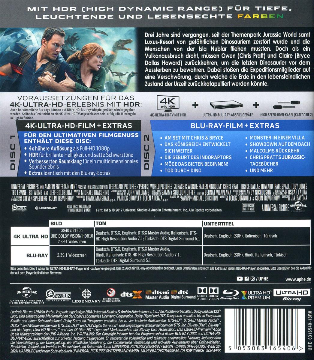 Enthält: Am Set mit Chris & Bryce; Das Königreich entwickelt sich weiter; Die Geburt des Indoraptors; Möge das Bieten beginnen!; Tod durch Dino; Monster in einer Villa; Showdown auf dem Dach; Malcoms Rückkehr; Chris Pratts Jurassic-Tagebücher; und mehr!