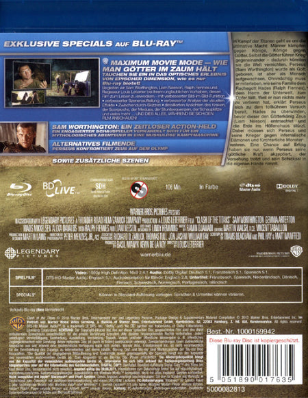 Enthält: Alternatives Ende; Sam Worthington: Ein Actionheld für die Ewigkeit; Zusätzliche Szenen; BD LIVE; WB Maximum Movie Mode - “Bild in Bild”-Erlebnis; Digital Copy des Films "Kampf der Titanen (2010)" zum Herunterladen (Angebot gültig bis 09.08.2011);