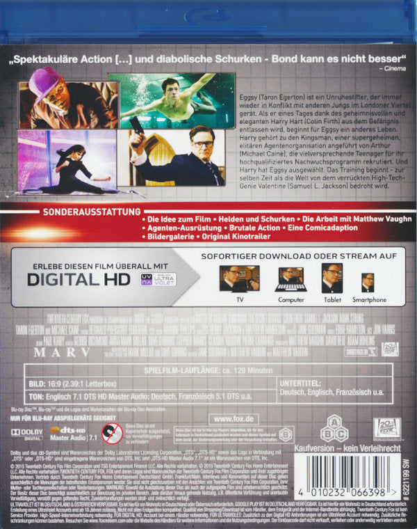 Enthält: Bildergalerien; Original Kinotrailer; Die Idee zum Film; Helden und Schurken; Die Arbeit von Matthew Vaughn; Agenten-Ausrüstung; Brutal Action; Eine Comicadaption;