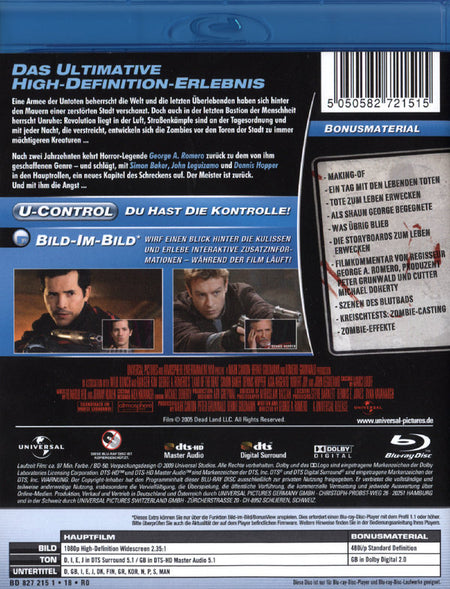 Enthält: U-Control: Bild-im-Bild (Wirf einen Blick hinter die Kulissen und erlebe interaktive Zusatzinformationen - während der Film läuft!); Making-of; Ein Tag mit den lebenden Toten; Tote zum Leben erwecken; Als Shaun George begegnete; Was übrig blieb; Die Storyboards zum Leben erwecken; Filmkommentar von Regisseur George A. Romero, Produzent Peter Grunwald und Cutter Michael Doherty; Szenen des Blutbads; Kreischtests: Zombie-Casting; Zombie-Effekte;