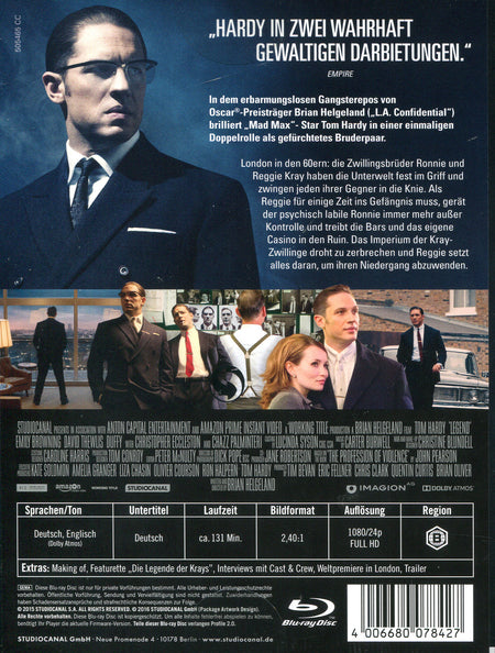 Die berüchtigten Kray-Zwillinge Ron und Reggie regieren in den Swinging Sixties die Londoner Unterwelt und haben es zu zweifelhaftem Ruhm gebracht. Doch die Geschäfte, die Reggie erfolgreich zu führen weiß, werden durch seinen Bruder gestört, bei dem Schizophrenie diagnostiziert wurde. Als Reggie die Frau findet, mit der er sein Leben teilen will, entspinnt sich ein perfides Spiel und dem Imperium der Kray-Zwillinge droht der Zusammenbruch.