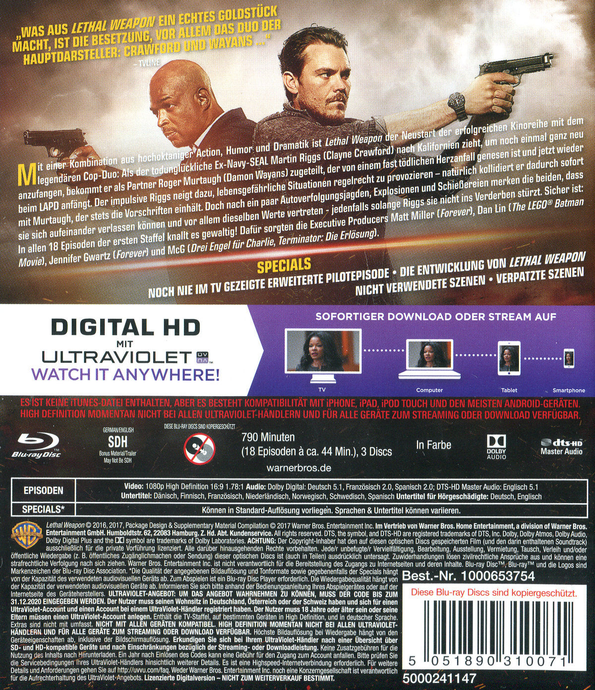 Enthält: Noch nie im TV gezeigte erweiterte Pilotepisode; Die Entwicklung von Lethal Weapon; Nicht verwendete Szenen; Verpatzte Szenen;