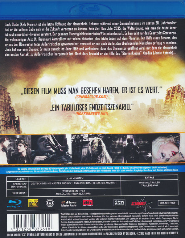Jack Slade ist die letzte Hoffnung der Menschheit. Geboren während einer Sonnenfinsternis im späten 20. Jahrhundert hat er die seltene Gabe, sich in die Zukunft versetzen zu können. Sein Ziel: Das Jahr 2035, die Weltordnung, wie man sie heute kennt ist nach einer Alien-Invasion zerstört.