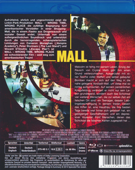 Malcom ist fertig mit seinem Leben. Einzig der Rausch von Chrystal Meth gibt ihm einen Grund weiterzumachen - alles andere ist ihm längst egal. Ausgerüstet mit einer Tasche voller Waffen und selbstgebauter Bomben macht er sich auf den Weg in die nahegelegene Vorstadtmall, um diese mal so richtig aufzumischen. Auf seinem persönlichen Kriegsfeldzug verändert er nicht nur sein Leben grundlegend, sondern auch das Schicksal weiterer Menschen, die zur selben Zeit am falschen Ort sind: Einen Teenager, dessen Lieblingsbeschäftigung in seinem tristen Dasein das Kiffen ist, eine Hausfrau, die ihre besten Tage bereits weit hinter sich gelassen hat, einen geldgieriger Geschäftsmann, dessen einziges Bestreben es ist, seinen Wohlstand zu mehren und einen depressiven Voyeuristen. Menschen, denen das Schicksal die falschen Karten zugespielt hat...