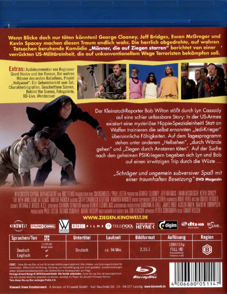 Enthält: Audiokommentare von Grant Heslov und John Ronson; Charakterbiografien; Geschnittene Szenen; Behind the Scenes; Fotogalerie; Goats Declassified: Die wahren Männer des 1. Bataillons; Projekt „Hollywood“: Ein Geheimbericht vom Set; BD-Live;