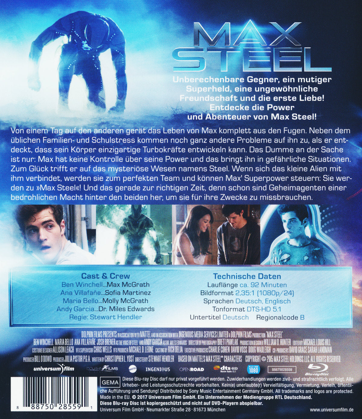 Von einem Tag auf den anderen gerät das Leben von Max total durcheinander. Nicht nur, dass er völlig neu in der Stadt ist, seine überfürsorgliche Mutter im Schlepptau hat und seit dem ersten Tag an der neuen Schule die süße Sofia nicht mehr aus dem Kopf kriegt. Das alles könnte er noch irgendwie managen. Doch es kommen noch ganz andere Probleme auf ihn zu, als er entdeckt, dass sein Körper einzigartige Turbokräfte entwickeln kann. Das Dumme an der Sache ist nämlich: Max kann sie nicht kontrollieren, und deshalb bringen sie ihn in die merkwürdigsten – ja sogar in gefährliche – Situationen. Max hat Angst, dadurch zum totalen Außenseiter zu werden. Zum Glück trifft er, bevor die ganz große Katastrophe passieren kann, auf ein mysteriöses Wesen namens Steel. Wenn sich das kleine Alien mit ihm verbindet, werden sie zum perfekten Team und können zusammen Max’ Superpower steuern: Sie werden zu „Max Steel“! Und das gerade zur richtigen Zeit, denn schon sind Geheimagenten einer bedrohlichen Macht hinter den beiden her, um sie für ihre Zwecke zu missbrauchen.