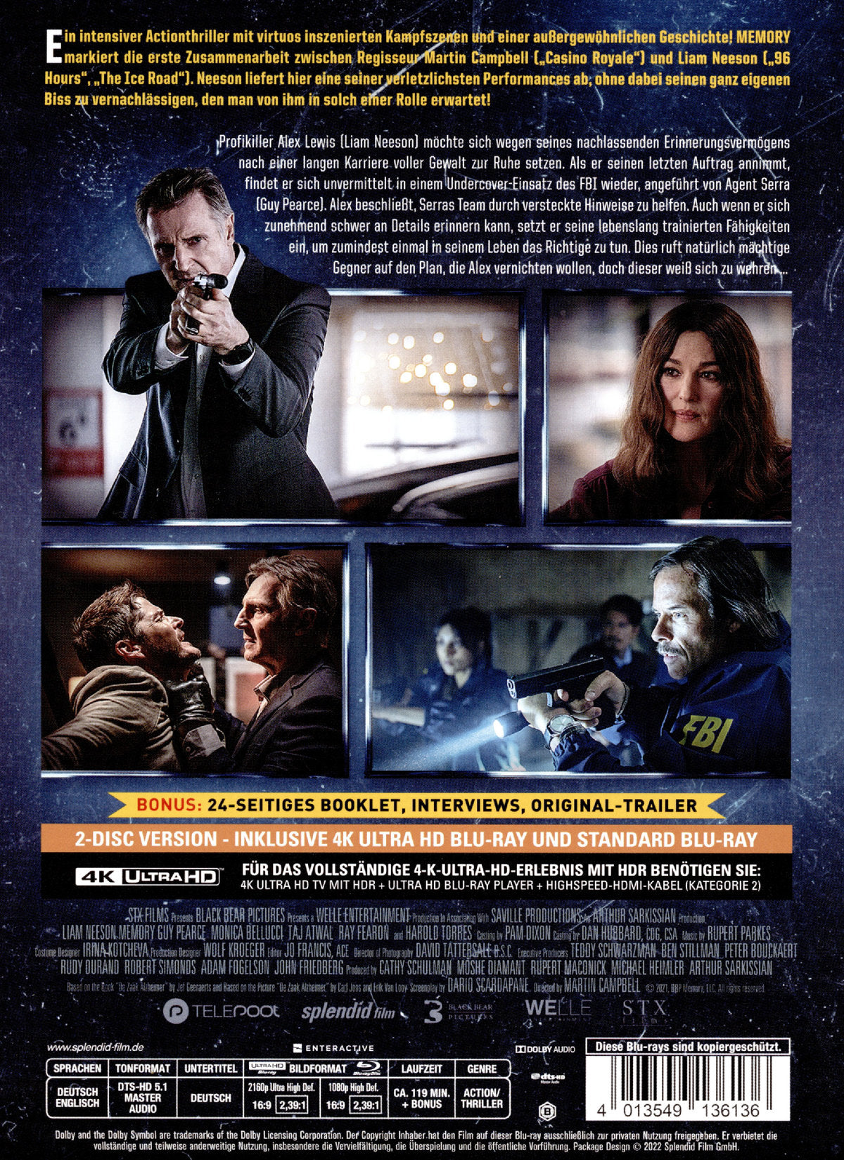 Memory - Sein letzter Auftrag LTD. - 4K UHD 2-Disc-Mediabook mit 24-seitigem Booklet (4K Ultra HD) (+ Blu-ray)