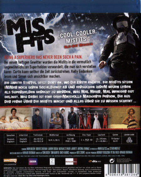 Bei einem heftigen Gewitter wurden die Misfits in die vermutlich ungewöhnlichsten Superhelden verwandelt, die man sich vorstellen kann: Curtis kann seither die Zeit zurück drehen, Kelly Gedanken lesen und Simon sich unsichtbar machen. Die zweite Staffel setzt nun dort an, wo die Erste endete: Die Misfits sitzen immer noch ihren Sozialdienst ab und versuchen ihrem neuen Leben als Superhelden Gerecht zu werden, was mal mehr, mal weniger gut gelingt. Neu dabei ist eine geheimnisvolle, maskierte Person, die aus der Ferne über sie wacht und alles über sie zu wissen scheint …